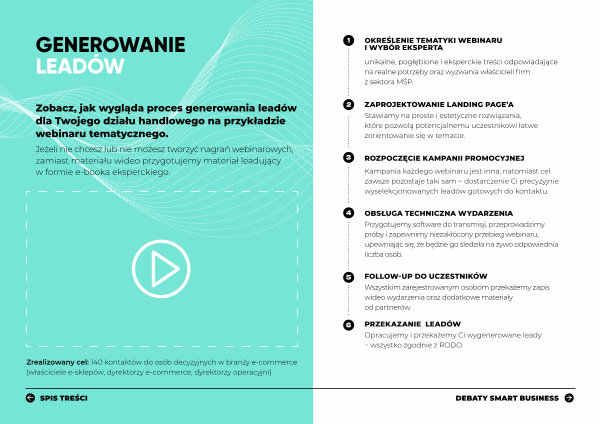 Jeżeli nie chcesz lub nie możesz tworzyć nagrań webinarowych, zamiast materiału wideo przygotujemy materiał leadujący w formie e-booka eksperckiego.