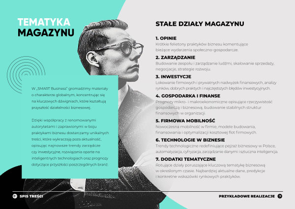 Dzięki współpracy z renomowanymi autorytetami i zaprawionymi w boju praktykami biznesu dostarczamy unikalnych treści, które wykraczają poza aktualność, opisując najnowsze trendy zarządcze czy inwestycyjne, rozwiązania oparte na inteligentnych technologiach oraz prognozy dotyczące przyszłości poszczególnych branż.