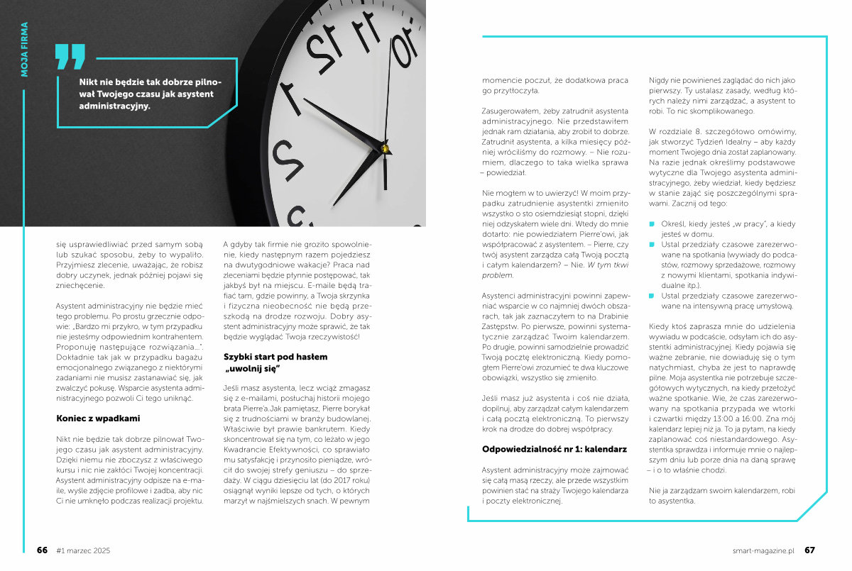 Nie ja zarządzam swoim kalendarzem, robi to asystentka. smart-magazine. pl