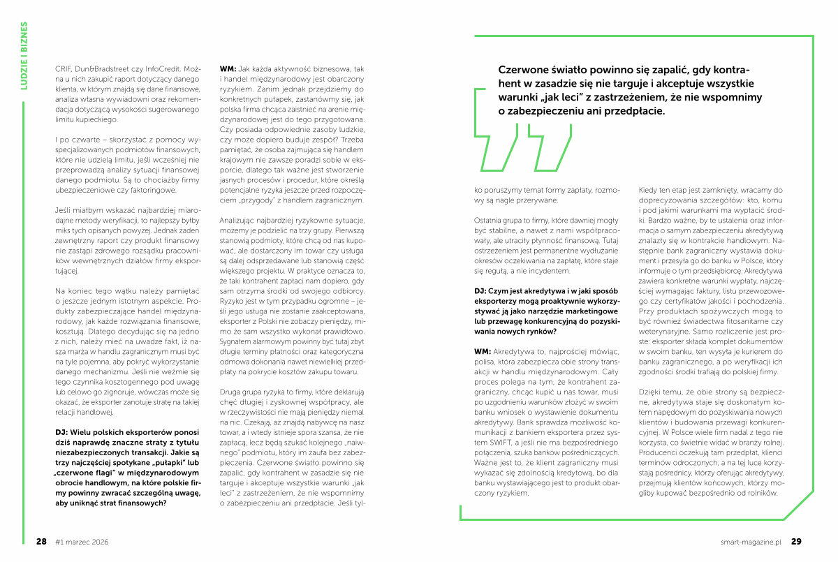 DJ: Wielu polskich eksporterów ponosi dziś naprawdę znaczne straty z tytułu niezabezpieczonych transakcji. Jakie są trzy najczęściej spotykane „ pułapki” lub „ czerwone flagi” w międzynarodowym obrocie handlowym, na które polskie firmy powinny zwracać szczególną uwagę, aby uniknąć strat finansowych?