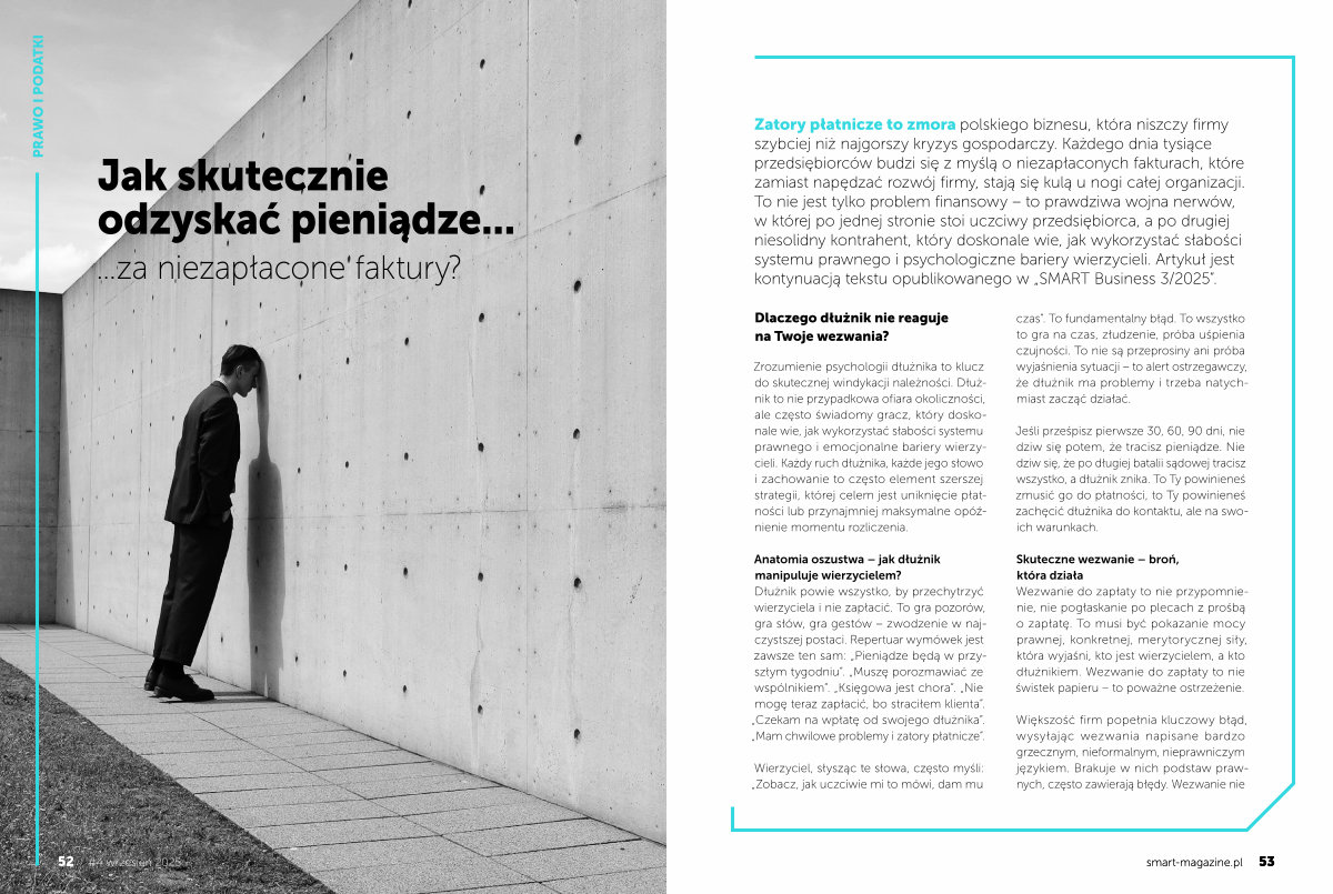 Zatory płatnicze to zmora polskiego biznesu, która niszczy firmy szybciej niż najgorszy kryzys gospodarczy. Każdego dnia tysiące przedsiębiorców budzi się z myślą o niezapłaconych fakturach, które zamiast napędzać rozwój firmy, stają się kulą u nogi całej organizacji. To nie jest tylko problem finansowy – to prawdziwa wojna nerwów, w której po jednej stronie stoi uczciwy przedsiębiorca, a po drugiej niesolidny kontrahent, który doskonale wie, jak wykorzystać słabości systemu prawnego i psychologiczne bariery wierzycieli. Artykuł jest kontynuacją tekstu opublikowanego w „ SMART Business 3 / 2025”.