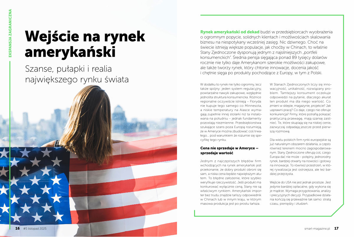 Dla wielu polskich firm rynki europejskie są już naturalnym obszarem działania, a często również terenem mocno zagospodarowanym. Stany Zjednoczone oferują coś, czego Europa dać nie może – potężny, jednorodny rynek, bardziej otwarty na nowości i gotowy na innowacje. To również przestrzeń, w której rywalizacja jest ostrzejsza, ale też bardziej przejrzysta.